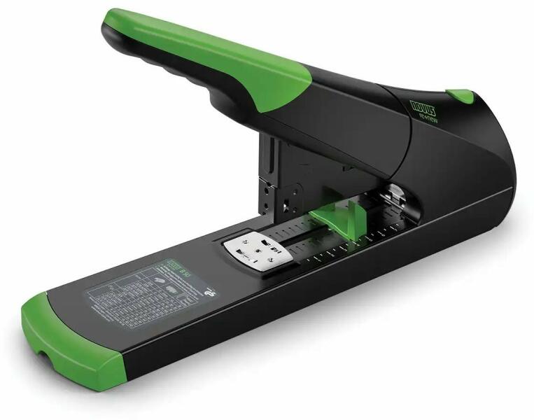 Perforator de birou durabil pentru utilizare grea pentru pana la 140 de coli de hartie cu sistem anti-blocare (ABS) pentru capsare convenabila, fara probleme. Dispozitiv complet metalic in carcasa din plastic. - adancime variabila de patrundere in pagina (pana la 75 mm)