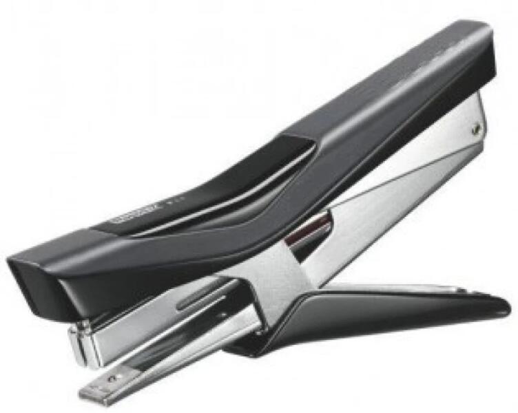 capsator tip cleste cu un design modern, sofisticat, cu mecanism din otel si carcasa din plastic. reincarcarea magaziei de capse se face prin partea superioara.