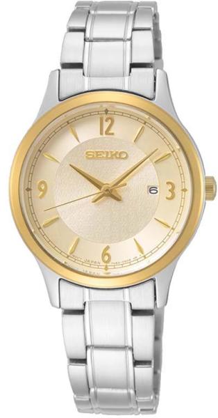 Ceasul de mana Seiko pentru femei are mecanism quartz si este potrivit stilului casual. Carcasa este din inox si are diametrul de 29 mm iar cureaua este confectionata din inox. Cadranul are display analog si geamul foarte rezistent realizat din cristal mineral cu etanseitate (rezistenta la apa) de 10 atm.