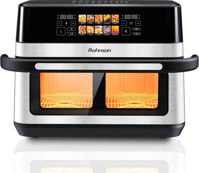 Friteuza cu aer cald R-2882 este un aparat de bucătărie inovator 2în1 care îmbunătățește prepararea meselor sănătoase.