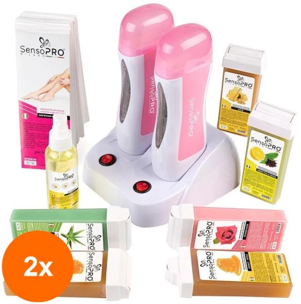 Acest pachet contine 2 bucati din produsul Kit Epilare Ital Expert + Cadou Rezerva Ceara, Aplicator IngustKit Epilare Ital Expert + CADOU Rezerva Ceara aplicator ingust contine urmatoarele produse: - 1 x Incalzitor Ceara Dublu Profesional SensoPRO Milano (Doua aparate de incalzit ceara + baza) cu suport dock in, 40 W, culoarea in functie de stocul disponibil, ce dispune de cablu alimentare 240  V- nuanta in functie de stocul disponibil - 1 x Rezerva Ceara Naturala SensoPRO Milano cu Miere, pentru orice tip de piele, 100 ml - 1 x Rezerva Ceara Naturala SensoPRO Milano cu Aloe Vera, pentru piele usor iritabila, 100 ml - 1 x Rezerva Ceara naturala SensoPRO cu Ceai Verde, pentru piele sensibila, 100 ml - 1 x Rezerva Ceara naturala SensoPRO Milano cu Titanium Rosa,  recomandata tuturor tipurilor de piele, cu precadere zonelor cu radacini groase si fir de par scurt, 100 ml - 1 x Rezerva Ceara Naturala SensoPRO Milano, Gold, pentru orice tip de piele, 100 ml